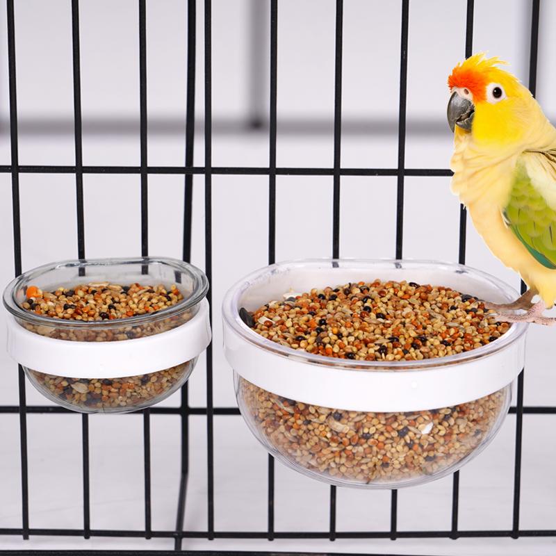 Bird Parrot Feeding Bowl Detachable Transparent Bowl Plastic Food Cup for Cage Convenient Hanging Seed Water Feeder for Parrots