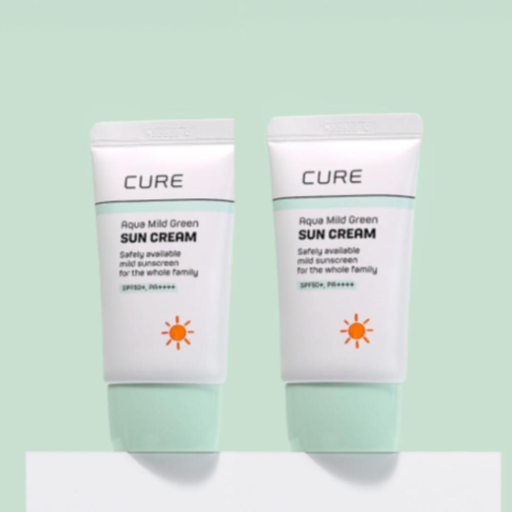 CURE Aqua Mild Green Sun Cream [40ml] - 2 Piece Value Set (80ml Total) - SPF50+ PA++++ Jeju Aloe Mild UV Protection