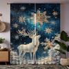 Christmas Snowflake Elk Print Curtains Decorations Home Room Curtain Set Of 2 Made Polyester Washable