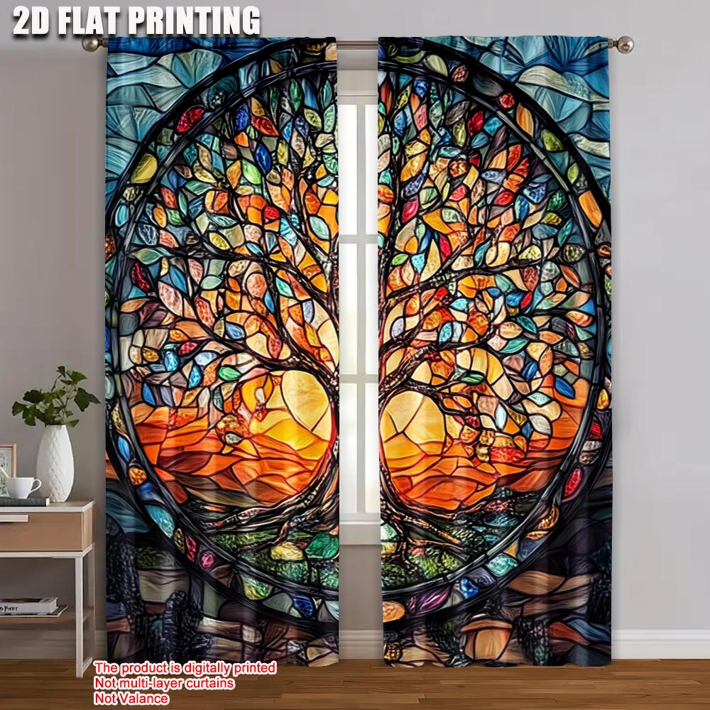 Flat Printing Curtain Stained Glass Tree Life Polyester Without Electricity Festive Wall Decor Home Party Curtains Set Of 2 Made