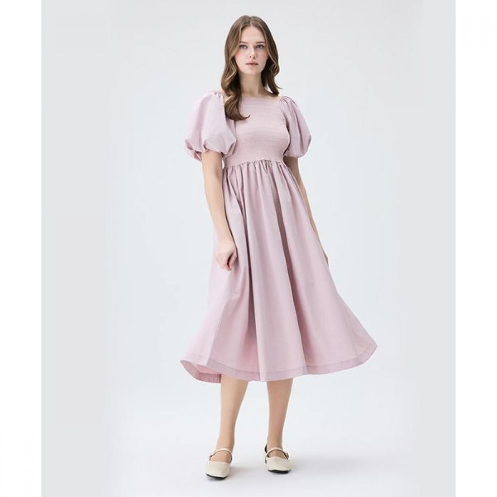 The Seamless Smocking Banding Puff Dress NGWSD1200 features a harmonious blend of seamless smocking material and woven puff sleeve details, creating an elegant hybrid dress. The skirt is designed to provide a cool, rustling sensation and the stretchy waistline allows for wearing as maternity wear. There are also kids' products available, enabling similarity in looks for parent and child.