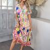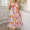 European and American Foreign Trade Women's Clothing Spring and Summer Casual Bohemian Vacation High-Waisted Geometric Color-Blocking Print Dress