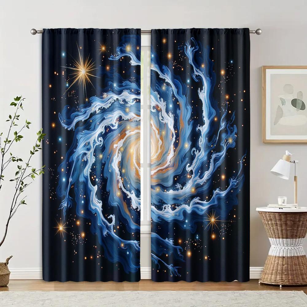 Filtering Curtains Excluding Rods Non Movable Without Batteries Blue Sky Galaxy Use Bedrooms Living Set Of 2 Made Polyester Bedroom Decor