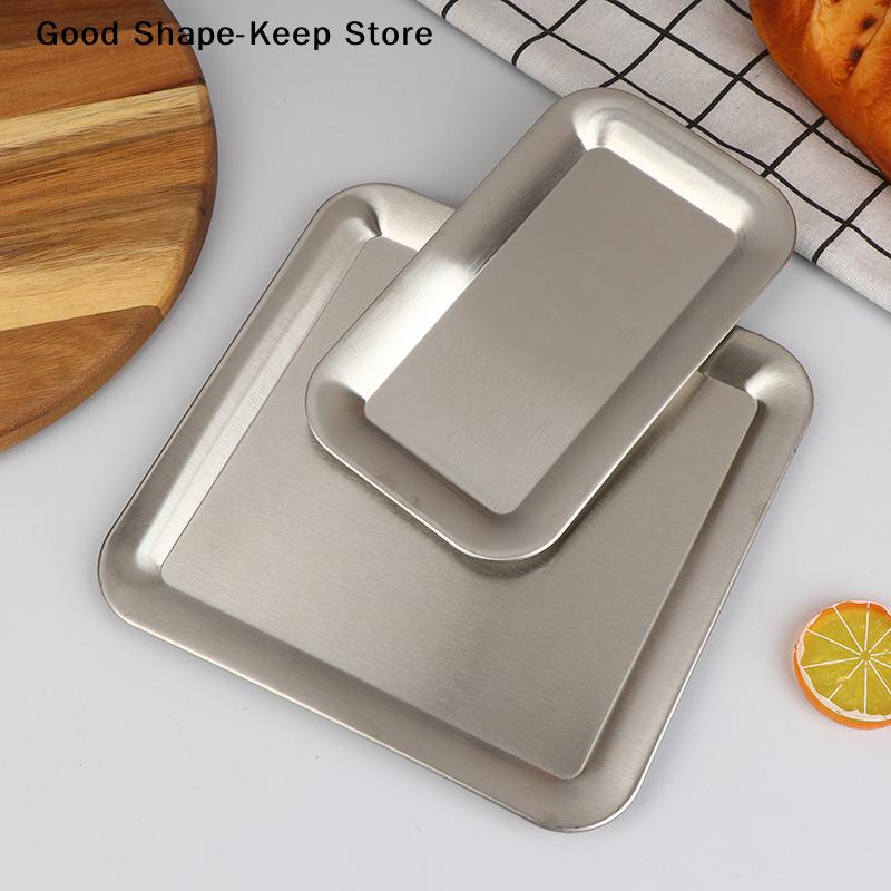Stainless Steel Serving Tray Cafe Cake Dessert Plate Storage Luxury Square Rectangular Trays Home Kitchen Storage Table Dish