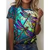 Fashion Women's Crew Neck T-Shirt 3D Color Printing Crew Neck Short Sleeve