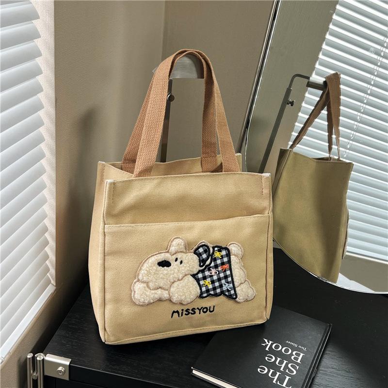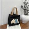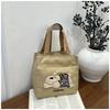 Trendy Canvas Shoulder Bag for Women Large Capacity Cute Bear Print Lunch Tote Handle Bag Comfortable and Texture Storage Bags