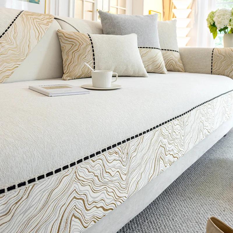 Chenille Splicing Pattern Edges Sofa Cover Solid Color Thicken Sofa Towel Anti-slip Couch Cushion for Living Room Four Seasons