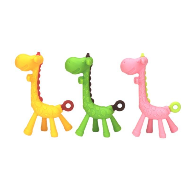 3PCS Baby Teething Toys, Giraffe Shape, Food Grade Silicone, BPA Free, Pink Teether for Infants