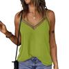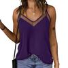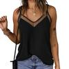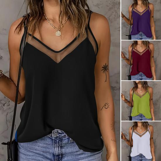 Women Tops Sling Spaghetti Straps V-Neck Mesh Splicing Loose Drape Cut Vest Soft Fabric Summer Casual Tank Tops