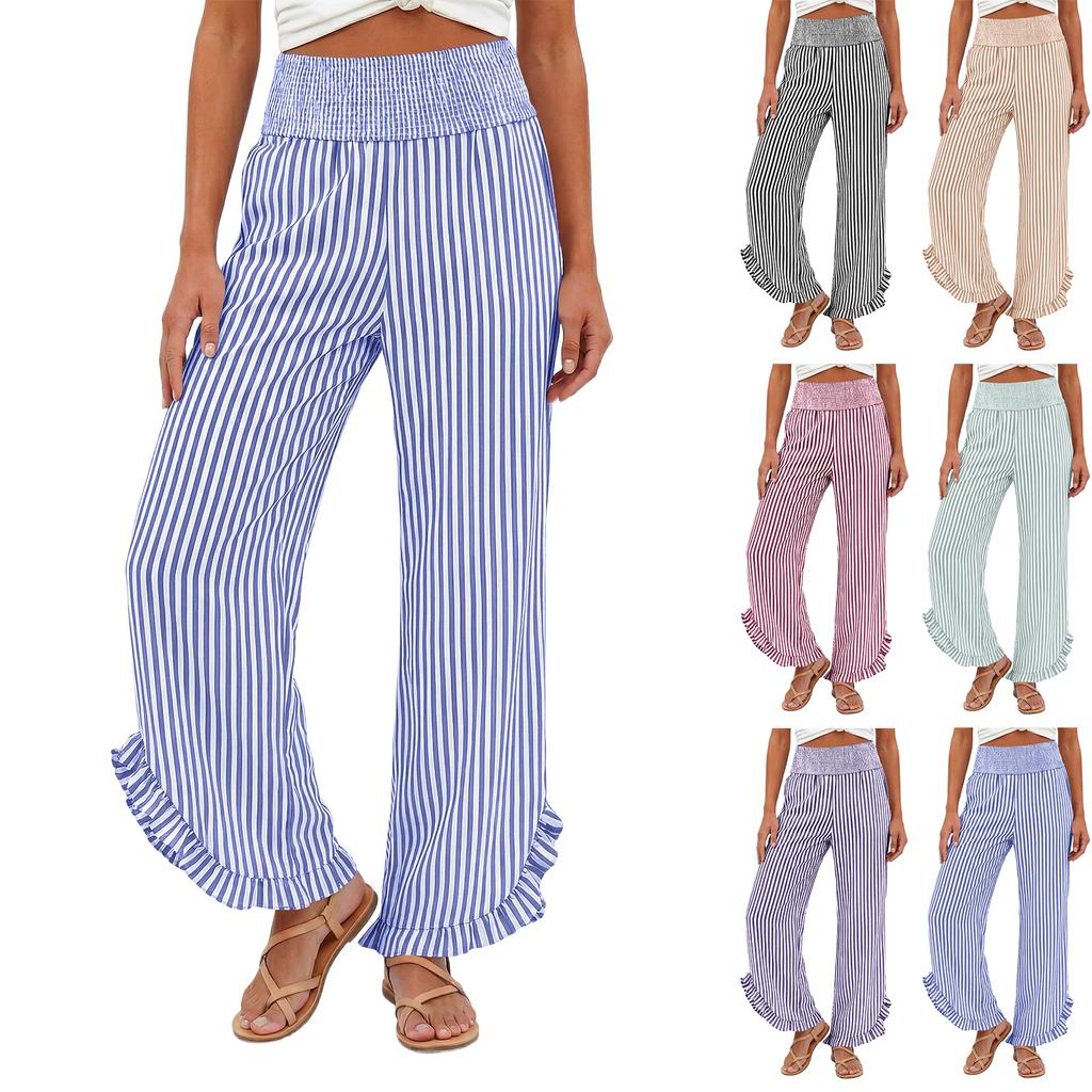 Womens Palazzo Pants Summer Casual Flowy Wide Leg Trousers Beach Travel Vacation Outfits