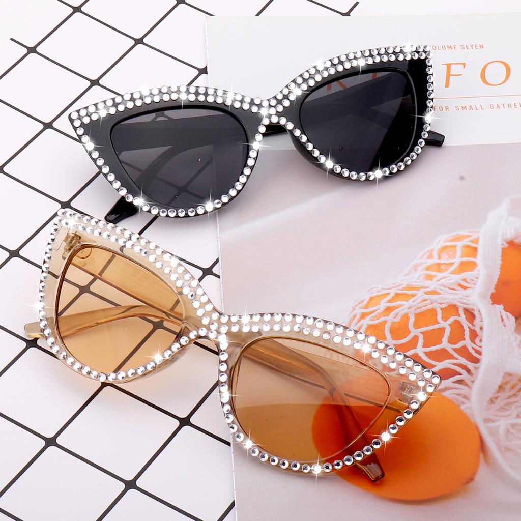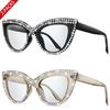 2 Pairs Trendy Glasses for Women Cat Eye Limation Diamond Beautiful Streetwear Decoration Eyewear for Party, Travel Vocation
