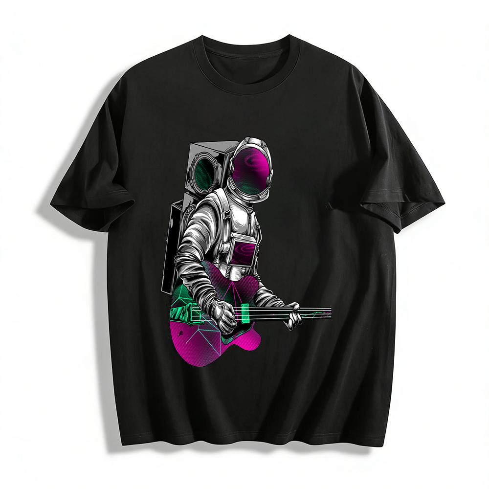 Astronaut Playing Cyber Guitar Graphic Street Style Casual T-Shirt Pure Cotton T-shirt