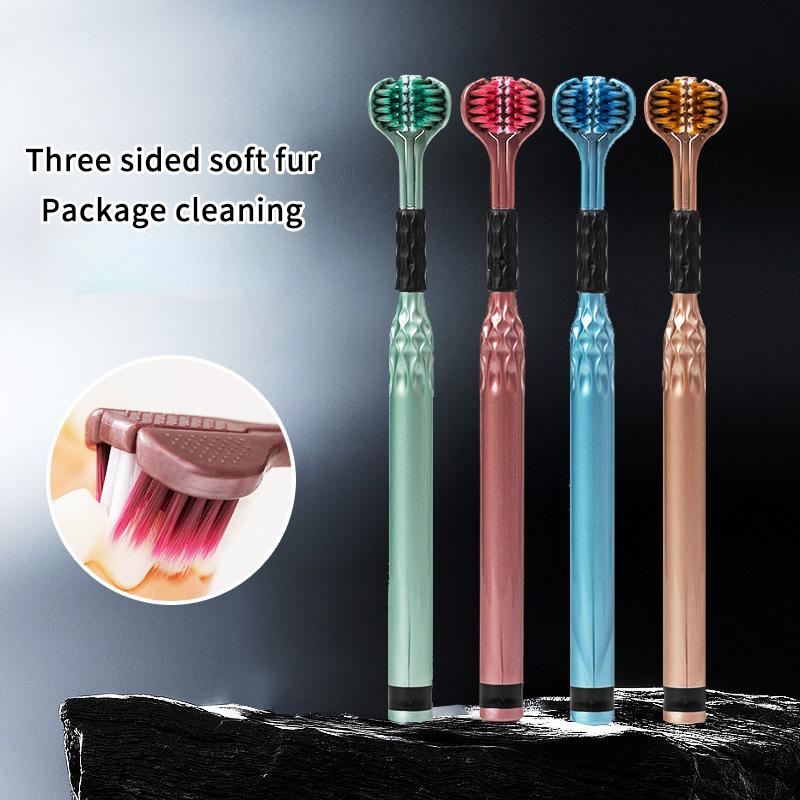 Soft Bristle 3D Triple Head Toothbrush For Adults With Tongue Scraper Home Care Manual Brush