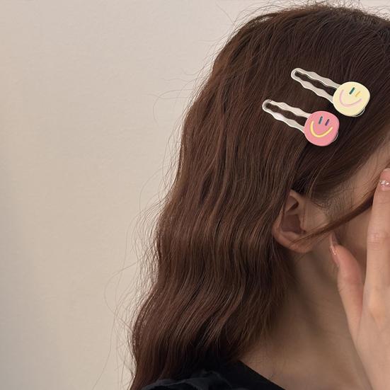 4Pcs Girl Hairpin Smile Face Pattern Stable Clamping Force Smooth Metal Edge Hair Clips Side Bang Hair Accessories