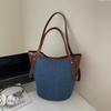 New Korean Style Patchwork Shoulder Bag Large Capacity Denim Tote Handbag for Women Fashiable and Versatile Commuting Bag