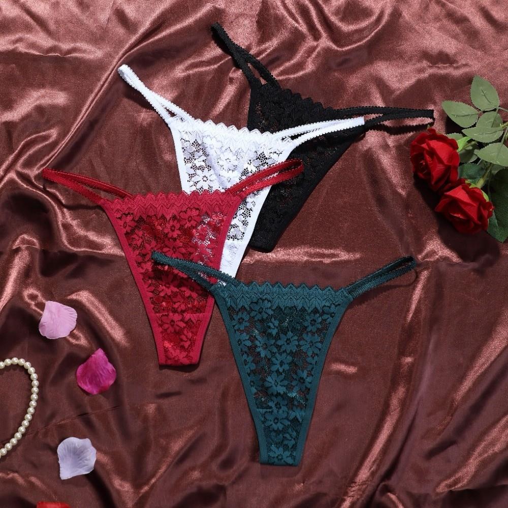 Low Waist Lace Flower Briefs Mesh T-Back Panties Comfortable Lace Thong Women Daily Wear