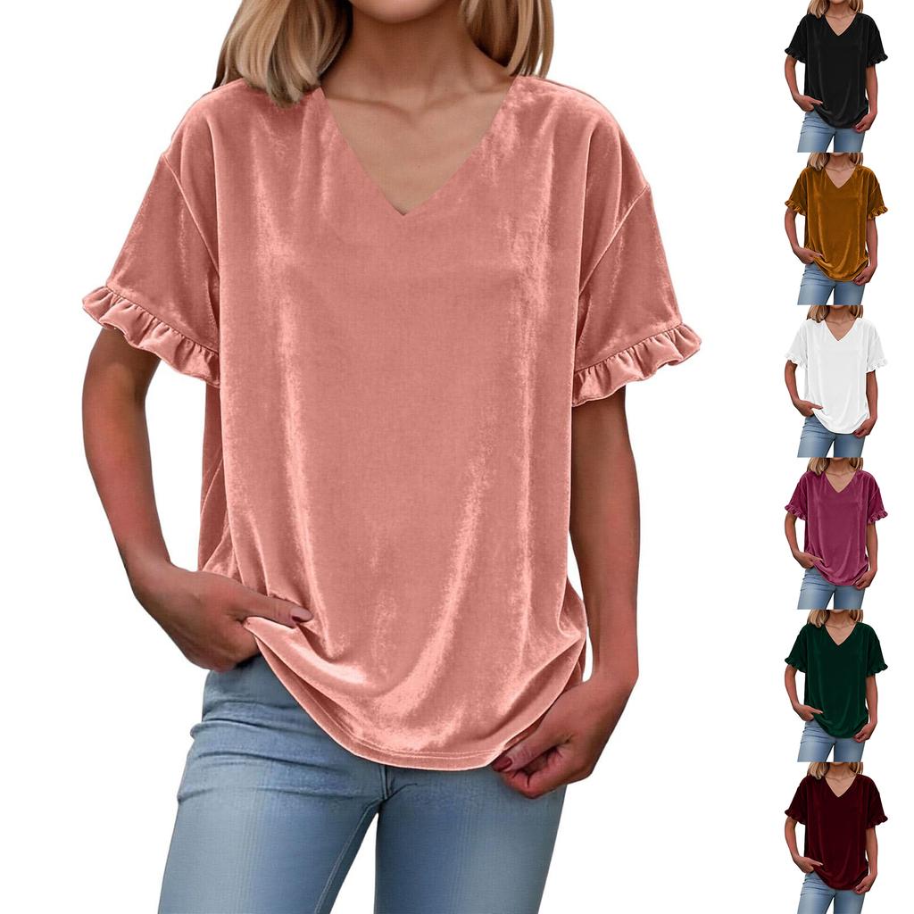 Women's Fashion V-Neck Short-Sleeve T-Shirt: -Color, Loose-Fit Casual Top