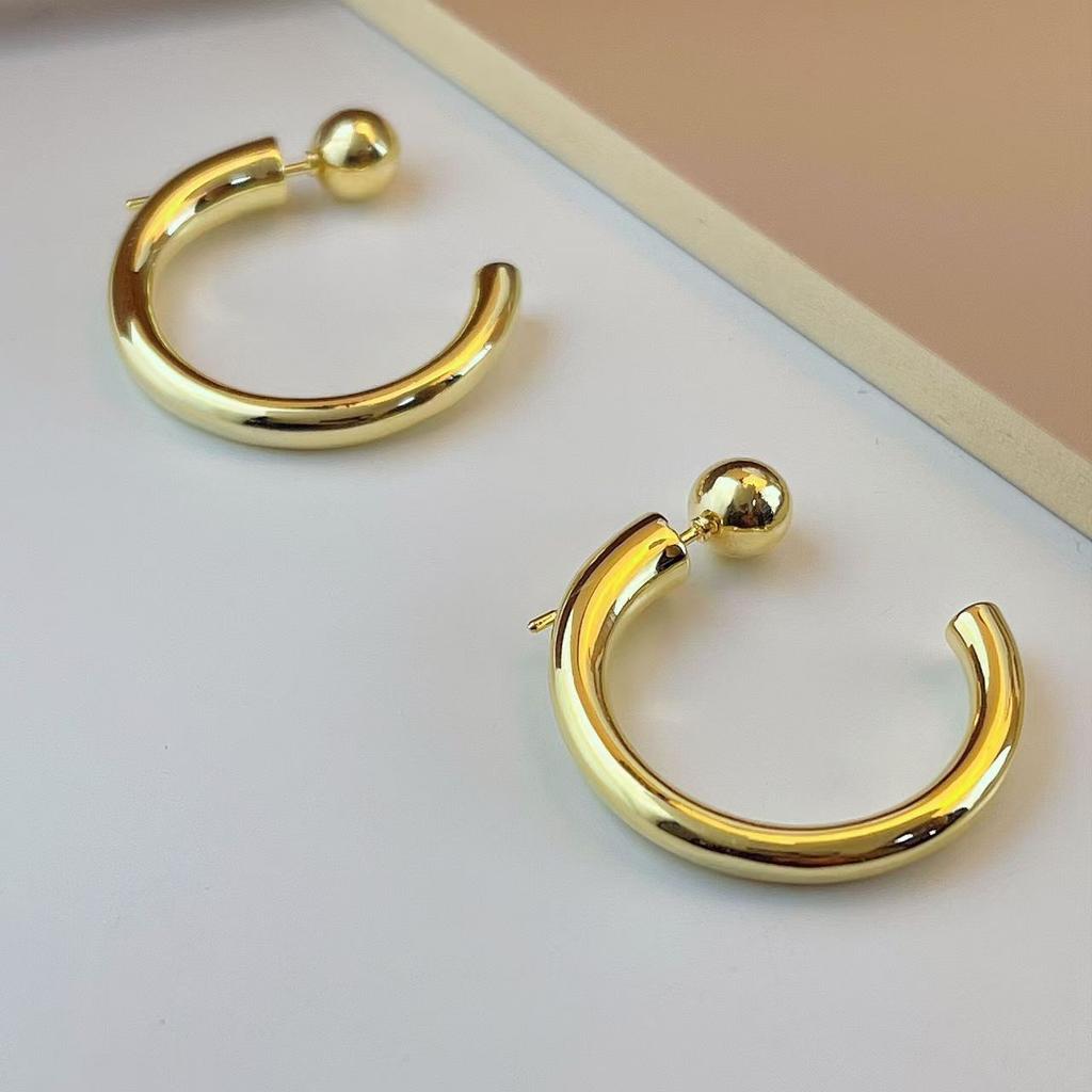 Minimalist High End Shiny Metal Hook Earrings Elegant Light Luxury Niche Versatile Cold Stud Earrings