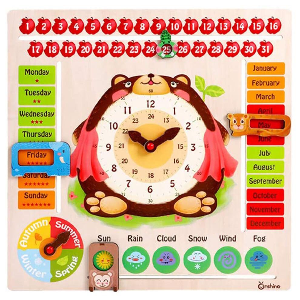 Kids Calendar Board Wooden Clock Toy Time Date Description