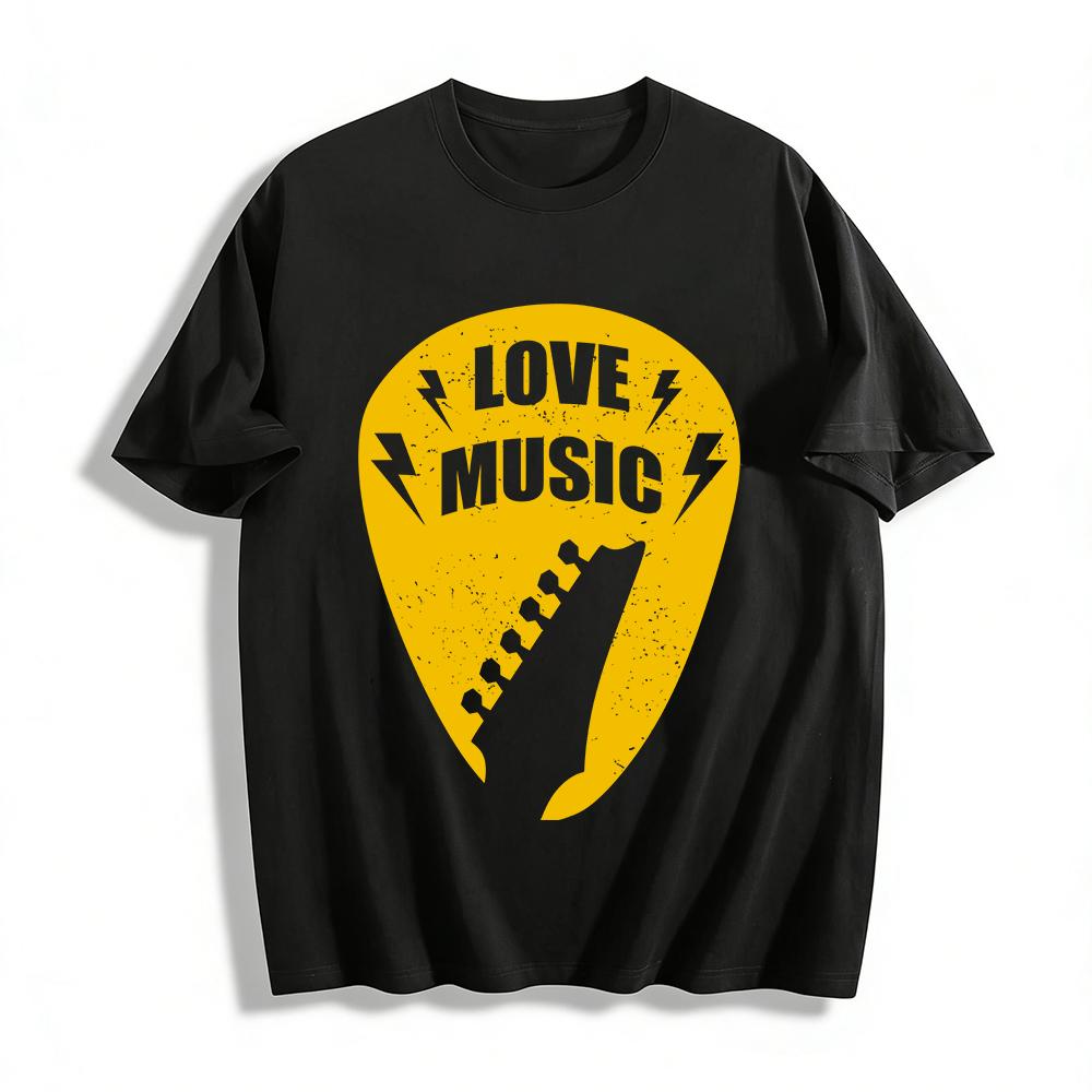 Love Music Guitar Pick Print Casual Tee Trendy Music Style Unisex Top Pure Cotton T-shirt