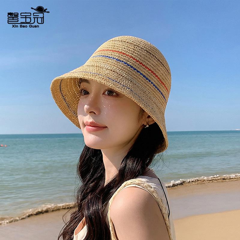 Women's Summer Sun Protection Sun Hat Striped Knitted Mesh Breathable Fisherman Hat