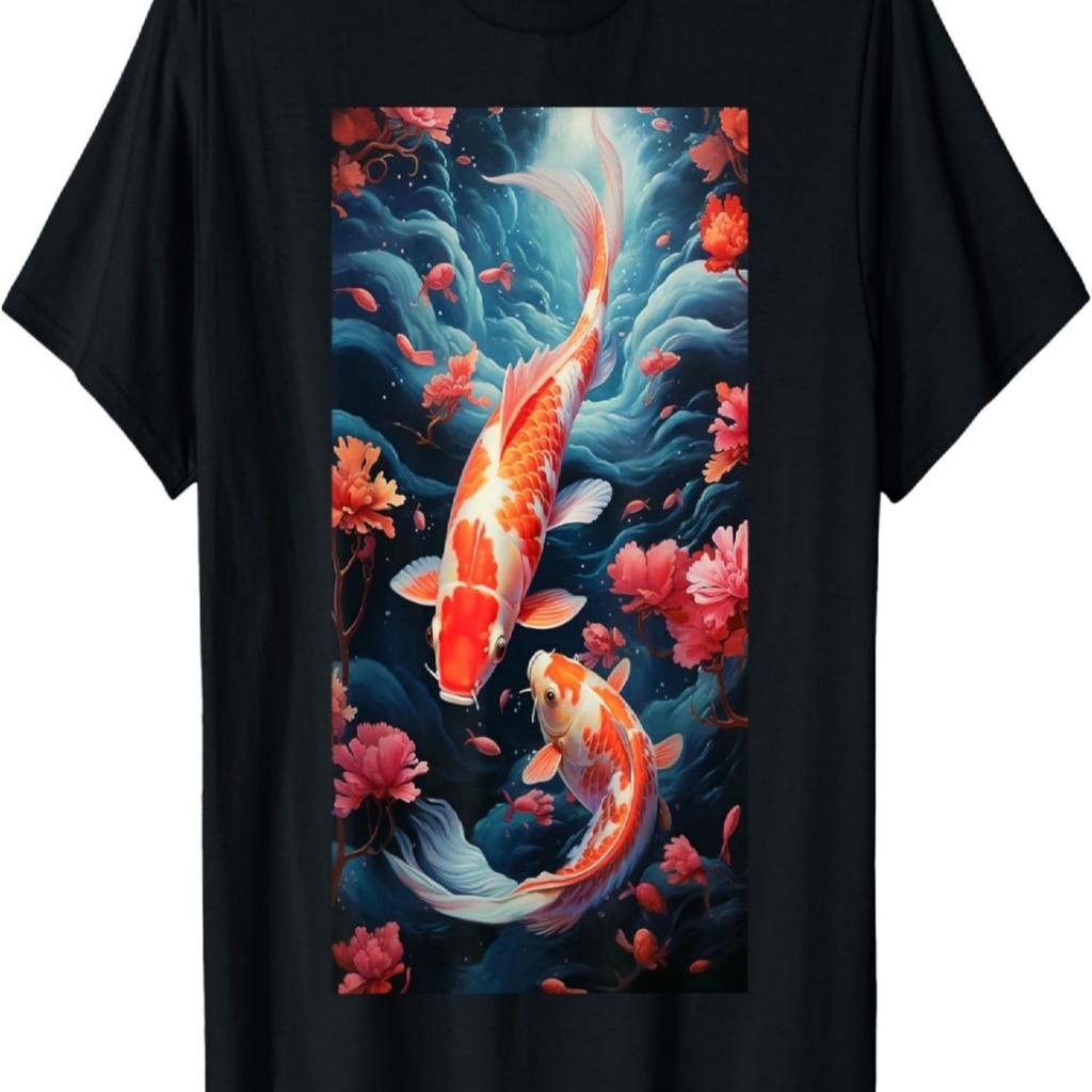 Koi Fish Pattern Asian Oriental Cherry Blossoms T-Shirt