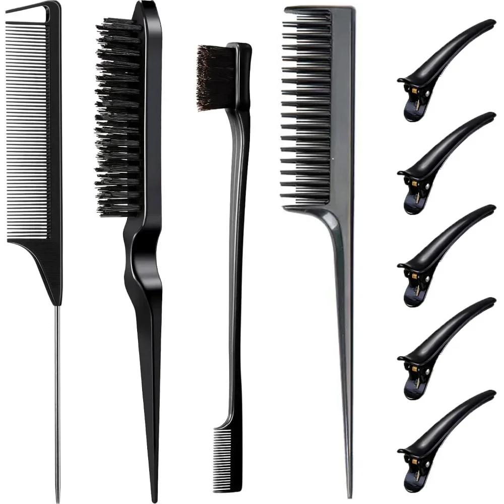 9PCS Hair Styling Comb Set Teasing Hair Brush Triple Teasing Combs Rat Tail Combs Edge Brush Hair Clips Barber Hairdressing Tool
