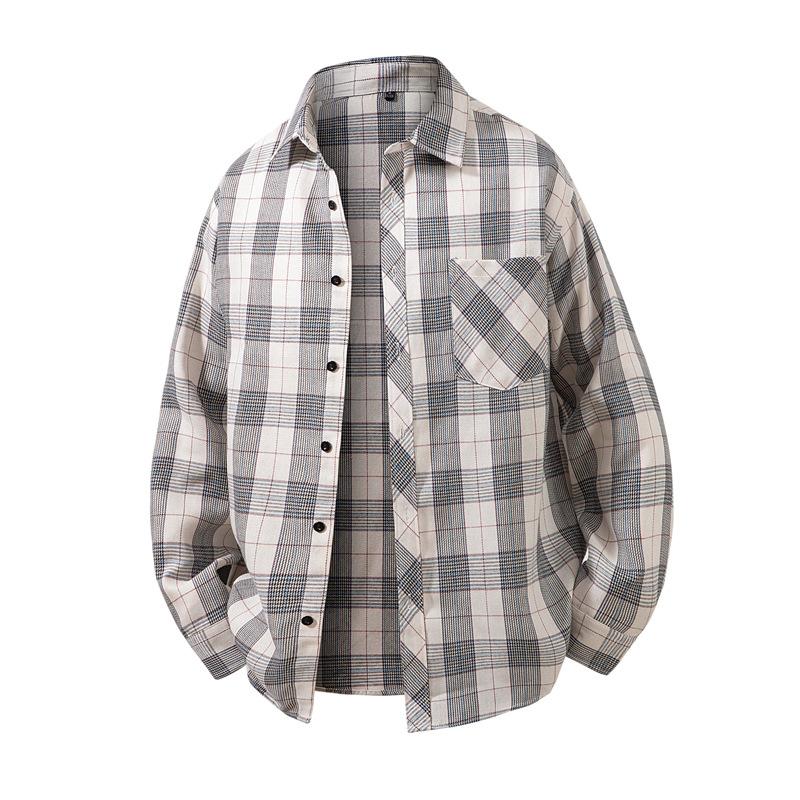 Men's Plaid Flannel Shirt Casual Long Sleeve Button Down Shirt Oversized Check Blouse