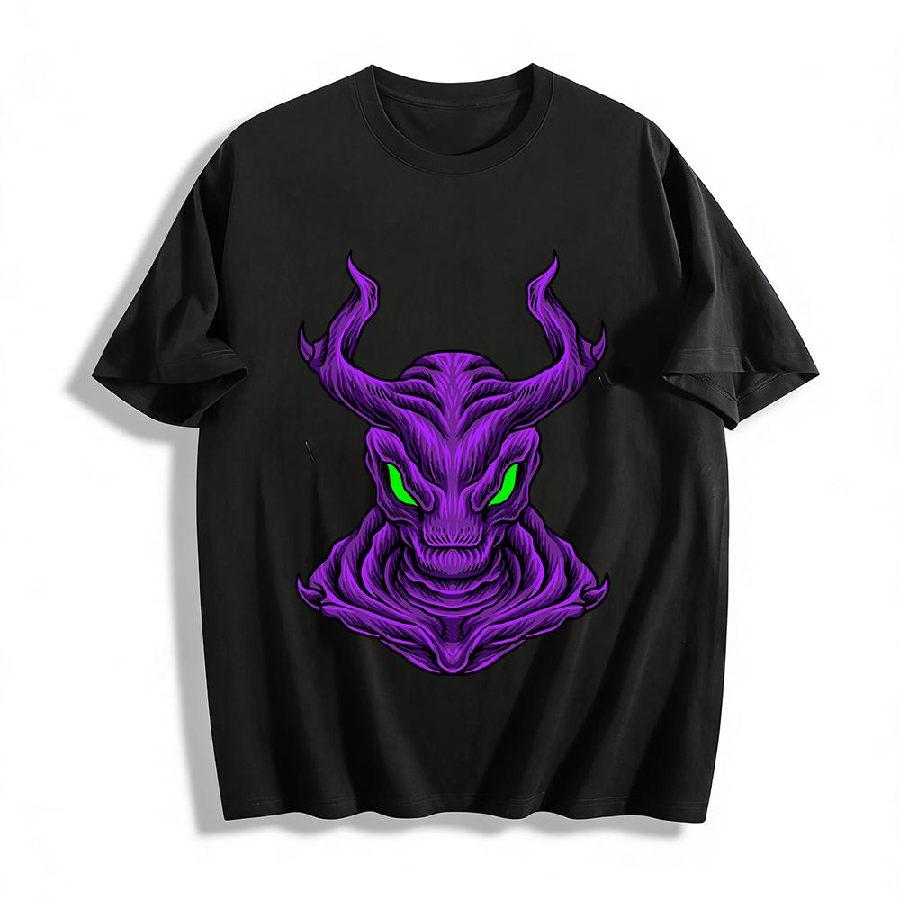 Dark Style Purple Horned Monster Print Casual Short Sleeve T-Shirt Pure Cotton T-shirt