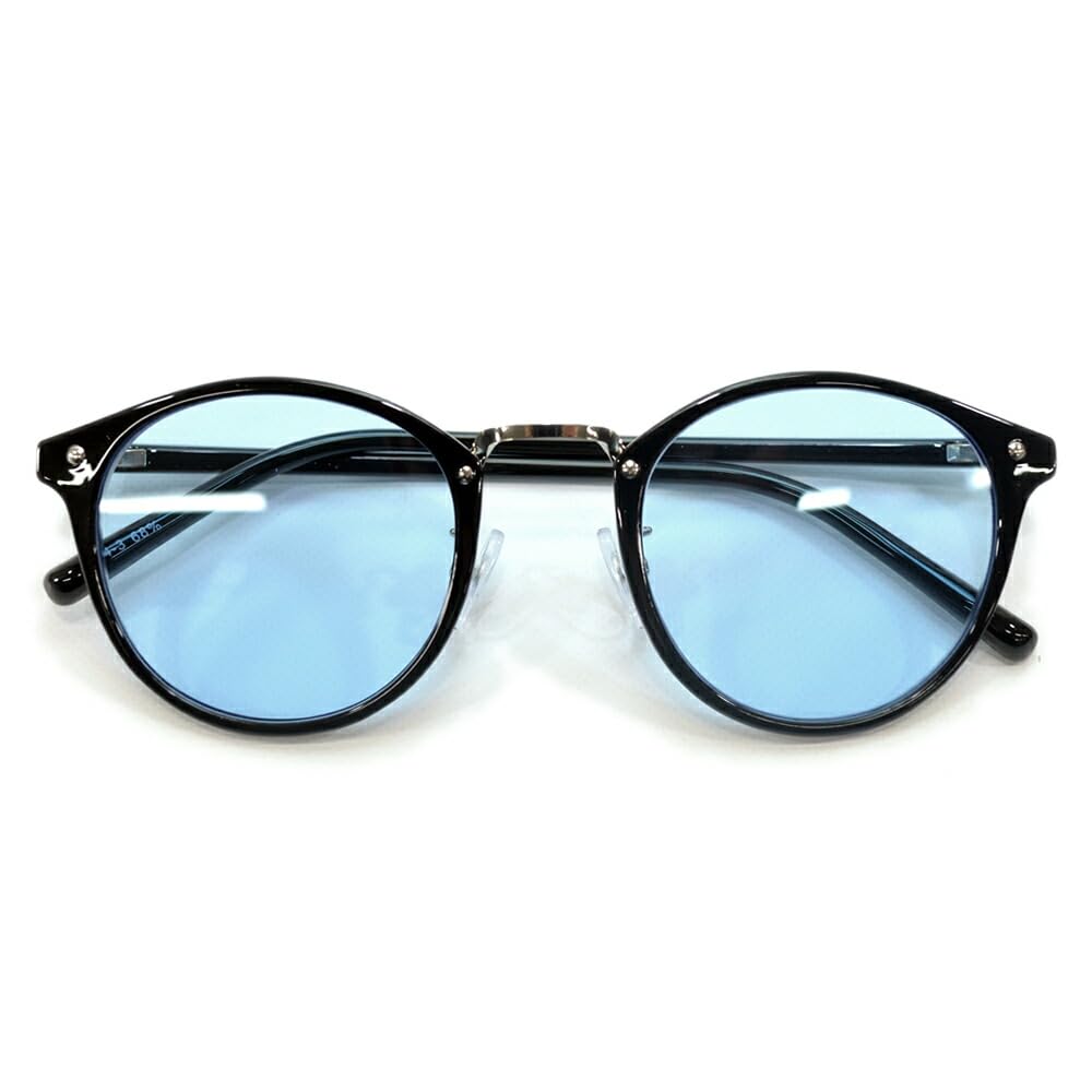 Sunglasses for Men and UV Fashion Boston Tinted Lightly [MERRY PLEASURE] Women, Protection, Glasses, Round, Style, Lenses, Colored, BLACK×Lt.BLUE