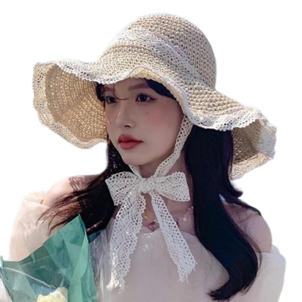Straw Hat with Lace and Strap UV Sun Beach Resort Hat [Lamerry] Women's - Protection, Protection, Farming, Gardening, Hat,