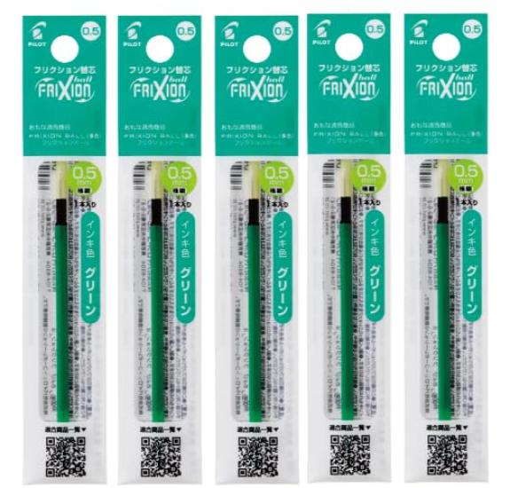 Pilot Frixion Ball Slim Multi-Color Refill, 0.5mm, 5-pack (Green, LFBTRF12EF-G)