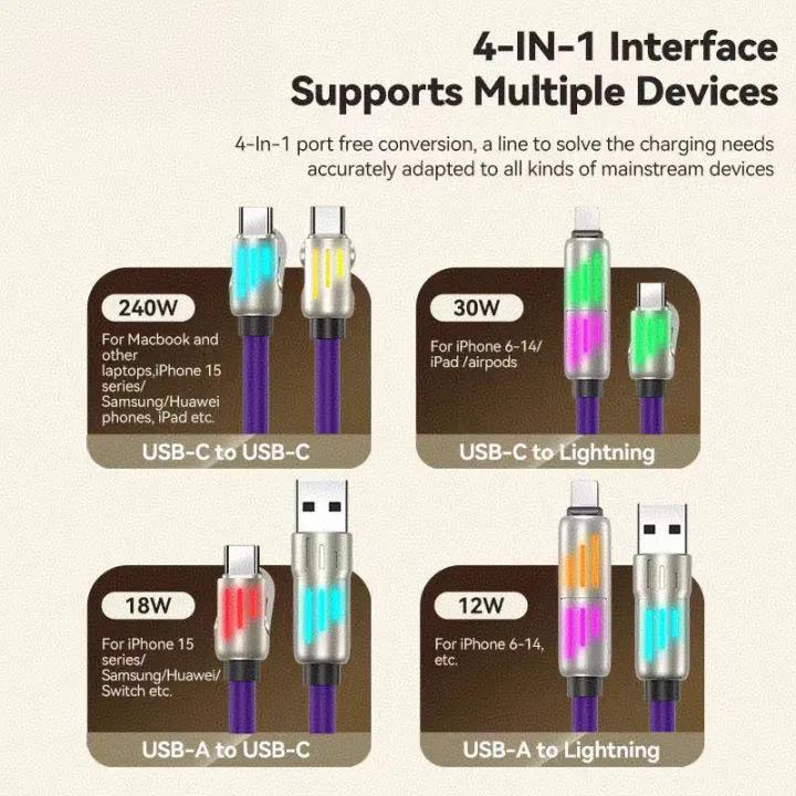 Light Column Multi-Functional 7-Color 4-in-1 Fast Charging Cable for Huawei & Apple 15 PD