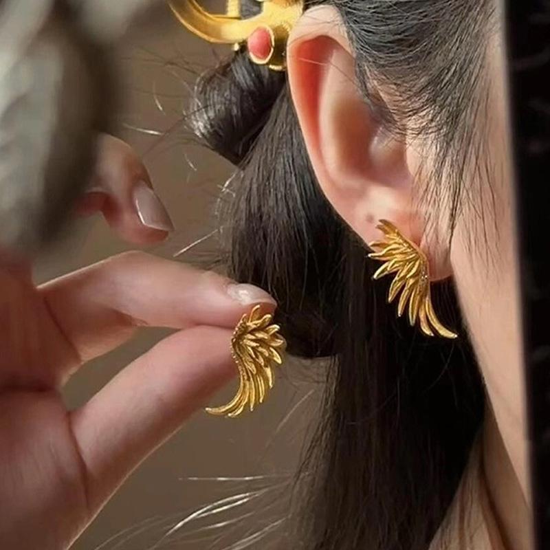 Creative Wings Feathers Stud Earrings for Women Vintage Fashion Irregular Metal Earrings Banquet Jewelry Accessories Gifts