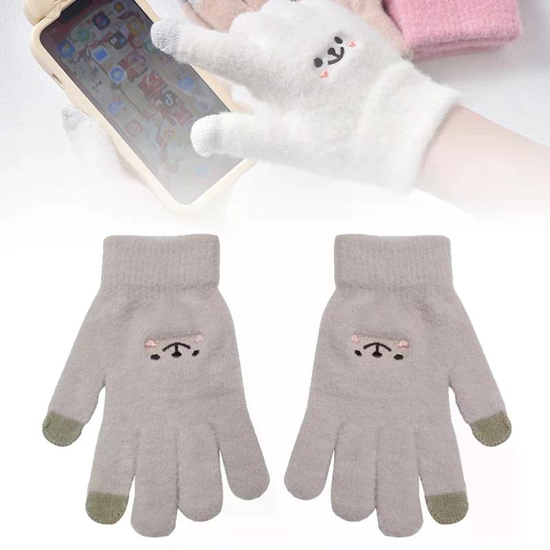 Kawaii Knitted Gloves Cute Cartoon Embroidered Bear Touchscreen Glove for Women Autumn Winter Warm Shopping Knit Soft Gloves