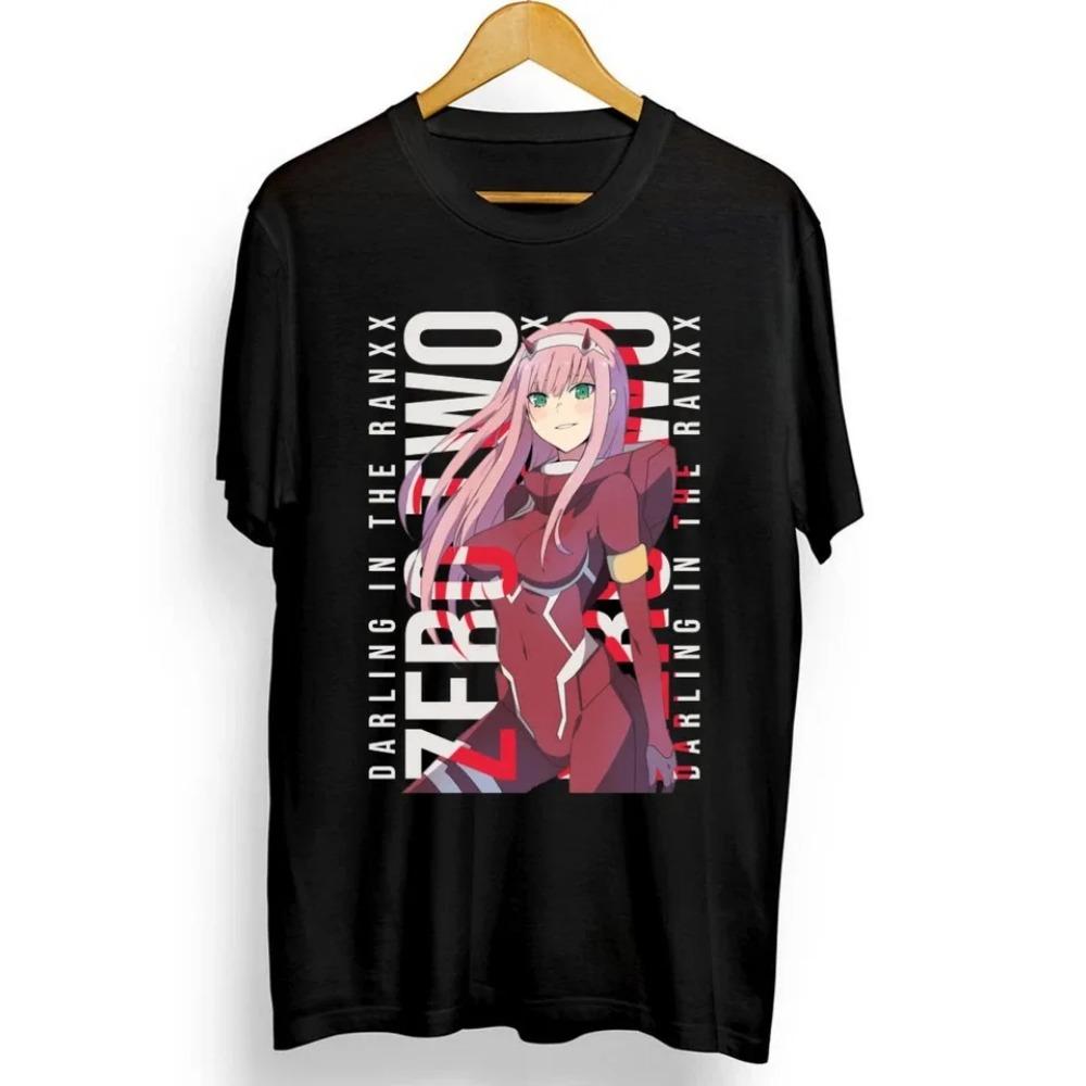 Zero Two Waifu Anime Pattern T-shirt Men's and Women's Summer Cotton Comfortable Short Sleeve Casual Sports Top