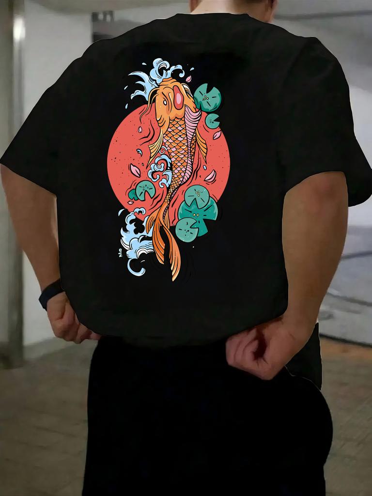 Japanese Koi Fish Mens Tshirt Loose Shortsleeved Summer Casual Pure Cotton Retro Clothing Suitable for Both Men Women