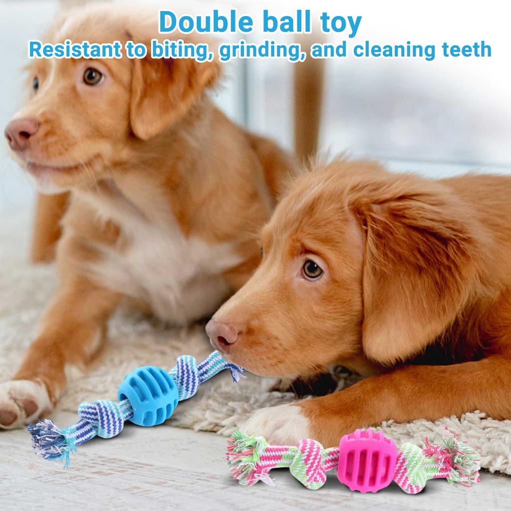 Dog Rope Toy With TPR Ball, Double Knot Chew Toy For Teeth Cleaning, Interactive Puppy Teething Toy For Small To Medium Dogs, Washable Cotton Rope Pet