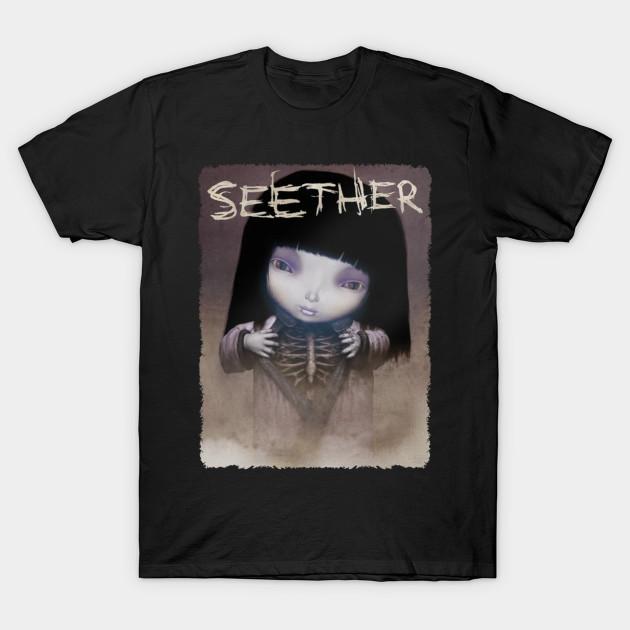 Men Black Print T-shirt Seether Band No-Cut Transfer Paper Print Cotton Tshirt