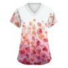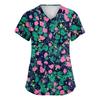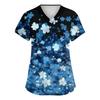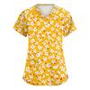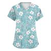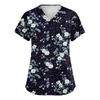 Women's Fashionable V-neck Workwear Printed Short Sleeved Pocket Side Slit Workwear Basic Pullover Top