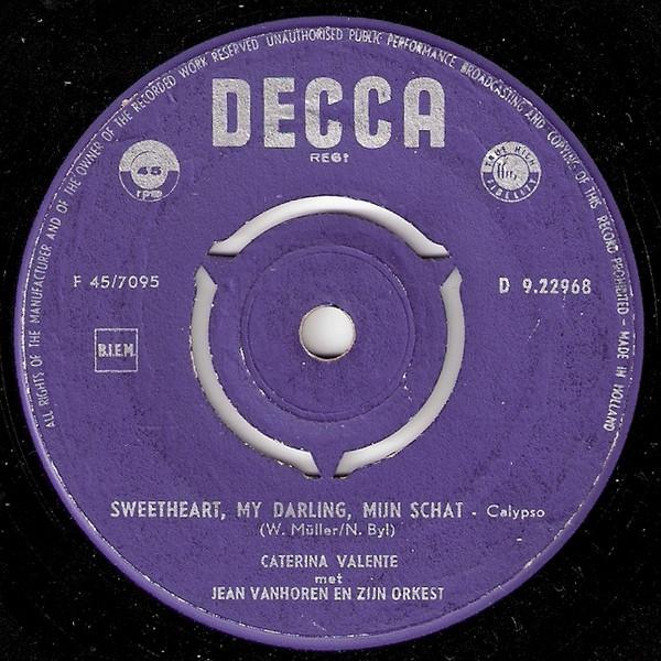7inch Record CATERINA VALENTE Sweetheart My Darling Mijn Schat D922968 Decca 1959 Netherland Pop Used
