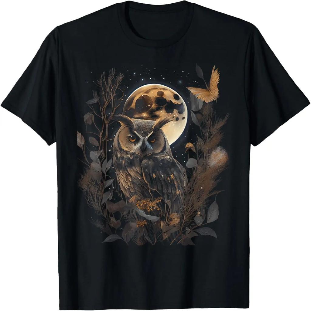 Owl Moon with Night Sky Stars Graphic Men Women Boys Girls T-Shirt